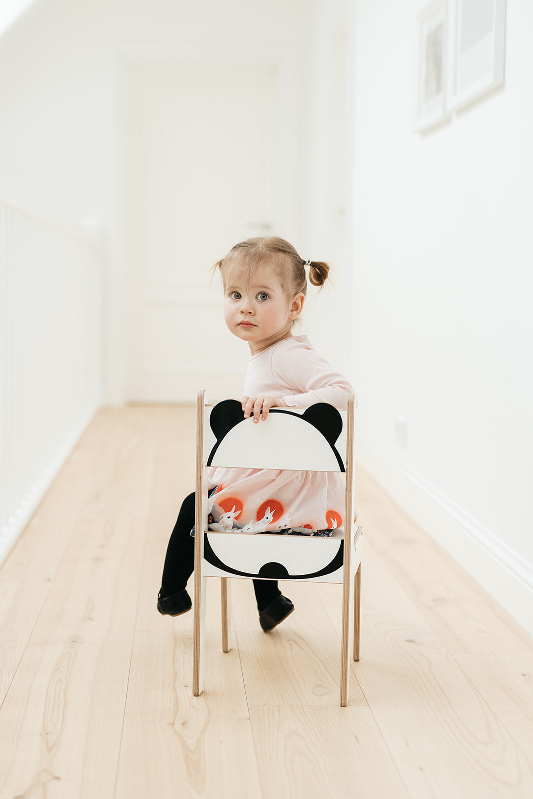 Durch die Kombination aus einer einfachen Form und dem kreativem Panda-Design passt der Kinderstuhl in jedes Zimmer.