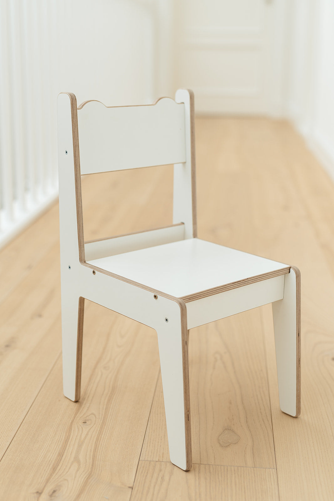 Dieser Stuhl für Kinder ist robust und langlebig aus erstklassigem Birkensperrholz. Alle Holzteile sind extra glatt geschliffen ohne scharfe Kanten. Lassen Sie Ihre Kinder jedoch nicht unbeaufsichtigt, während sie auf dem Stuhl spielen.