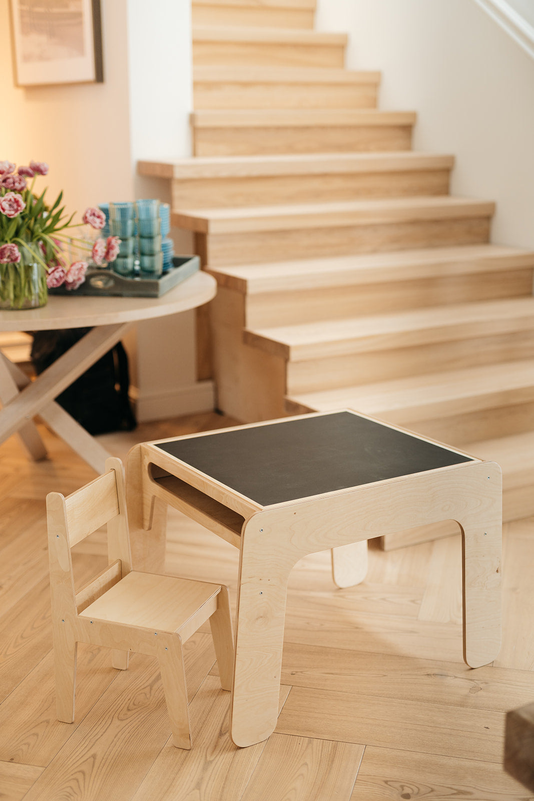 Unsere Tische und Stühle sind für Kinder ab 2 Jahren konzipiert. Die Stühle sind robust genug, um ein Gewicht von 100 kg zu tragen und können auch von den Eltern verwendet werden.