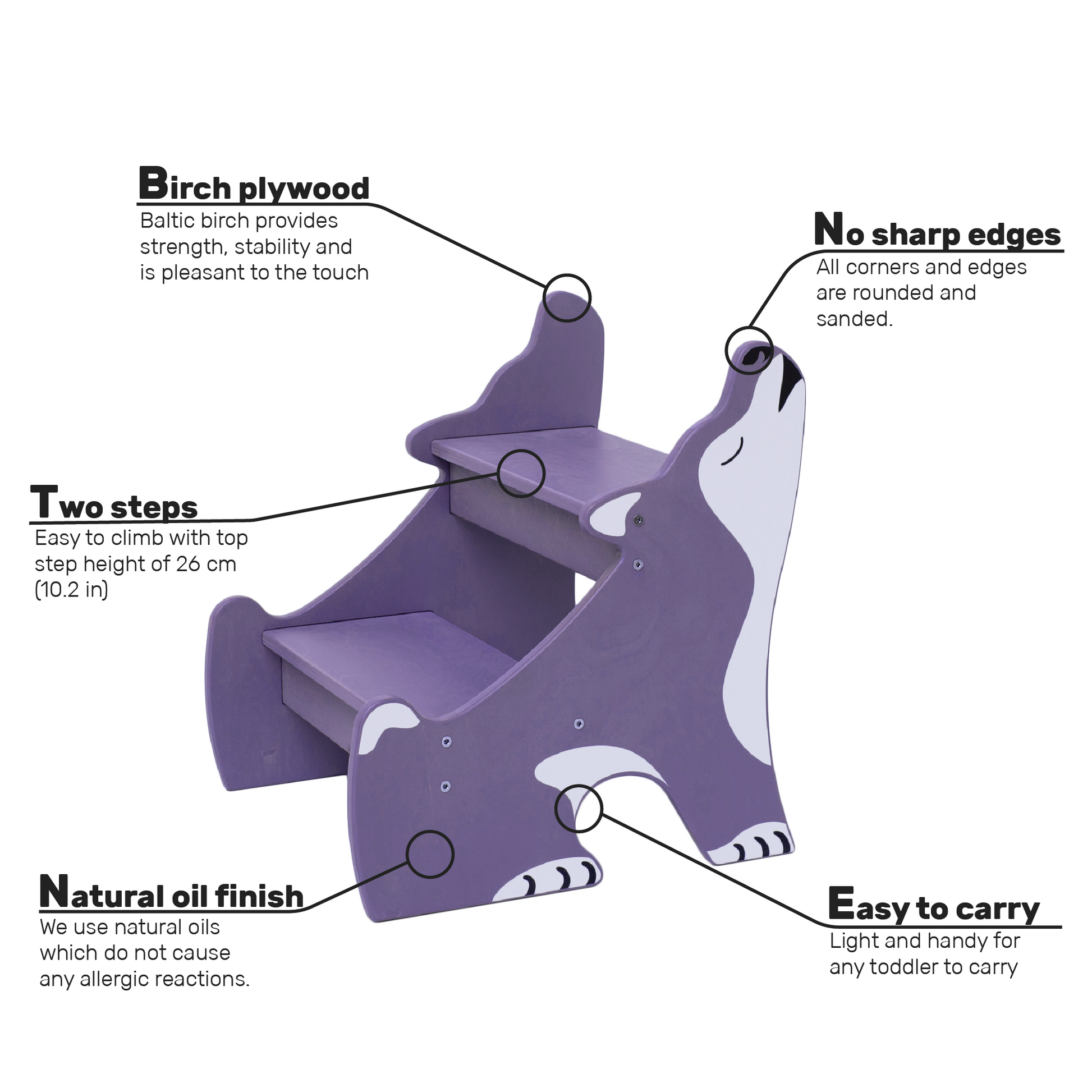 Dogs are great companions and helpers. We have created a new best friend for your child, who will make them more independent and engaged in various daily activities. Our step stool is light enough for toddler to carry it anywhere necessary - kitchen, bathroom or even that top drawer that has been off-limits before.